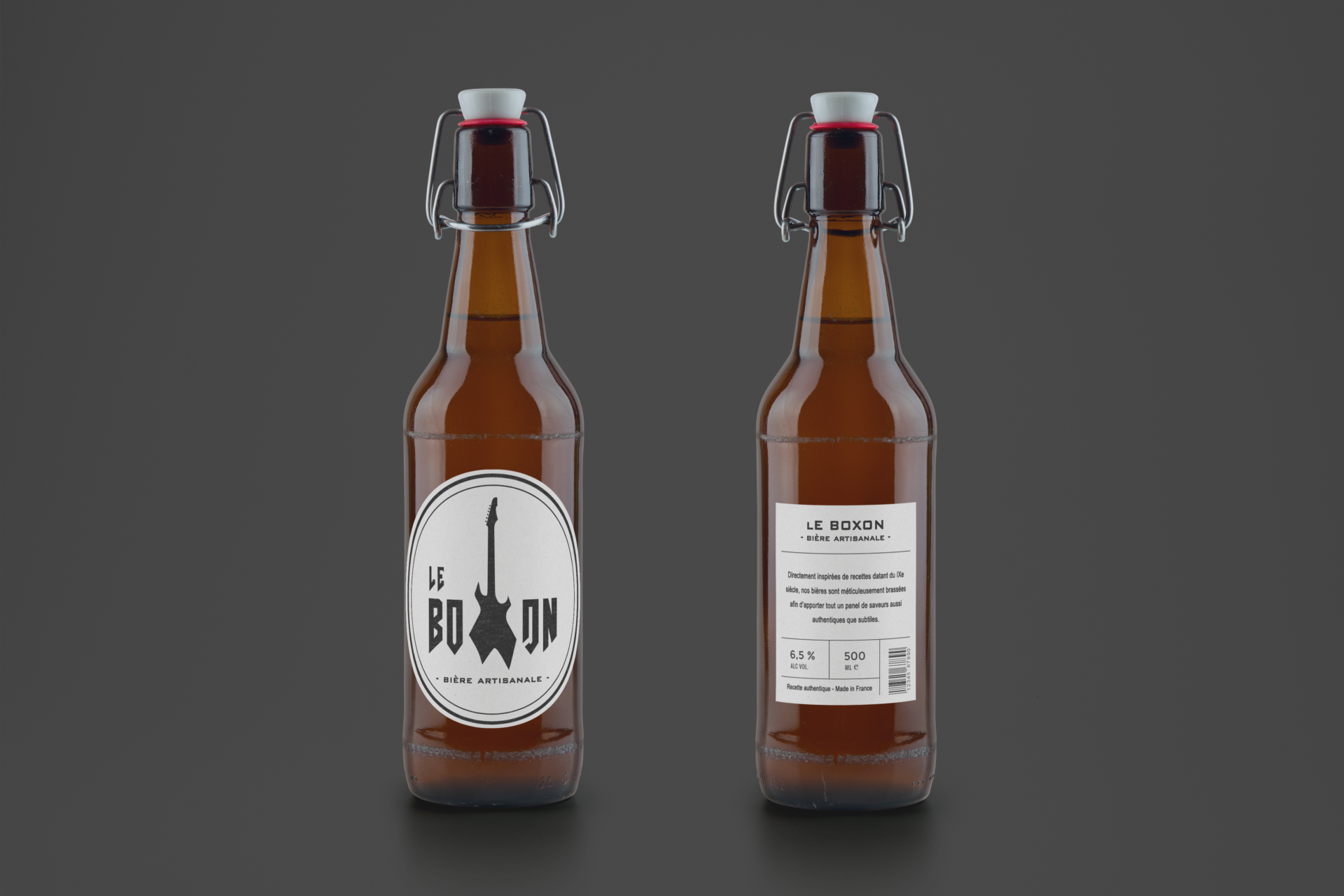 Le Boxon est un bar aux ambiances rock et métal, mettant en avant des bières artisanales locales. Cet univers devait être retranscrit dans le logo, où le X du mot boxon devait impérativement être représenté par une guitare électrique.